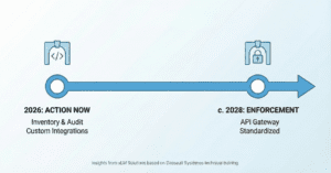 Dassault indicated it is moving toward an API Gateway model, with enforcement expected around the 2028 timeframe.